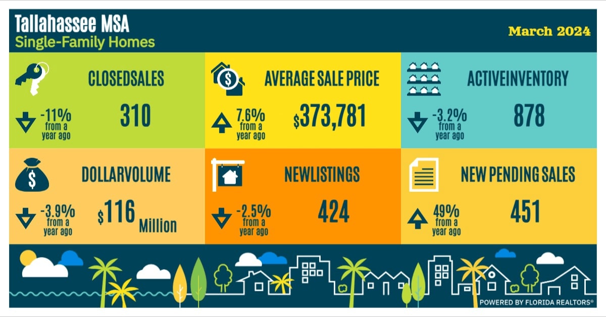 This March, compared to last March, we saw a national inventory growth of 23.5%, and over 45% in Florida. This boost in inventory is a great thing. Newly listed homes was up over 15% from March 2023 marking the 5th month of increased listing activity after a 17-month decline. More inventory on the market bodes well for home buyers.