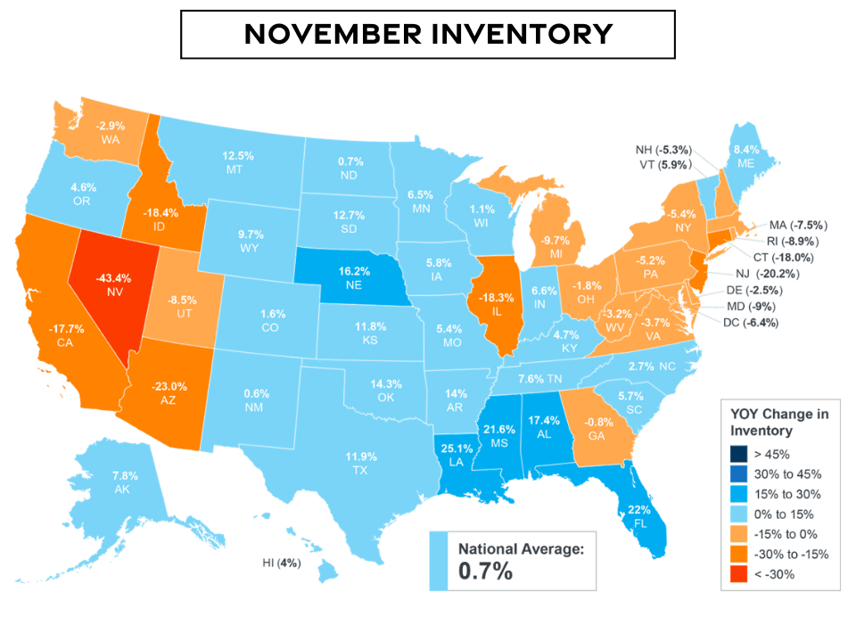 And it may be coming, because November is typically a month when we see inventory decrease. But, year-over-year, this November inventory increased for the first time since 2017. A wonderful sign.
