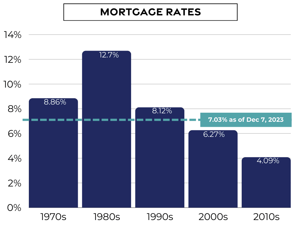 Home price forecasts are all over the place – from 4% appreciation to 1.7% depreciation. Overall, the experts are forecasting an average of 1.5% appreciation. Although we have averaged 4.92% appreciation over the past 40 years, it would not be surprising to see a relatively flat appreciation in 2024, as we come off of historically high, double-digit appreciation post-pandemic. However, a lower than normal appreciation for 2024 is not bad news – it would help affordability. We need home prices to slow, wages to increase, and, most importantly, mortgage rates to moderate.
