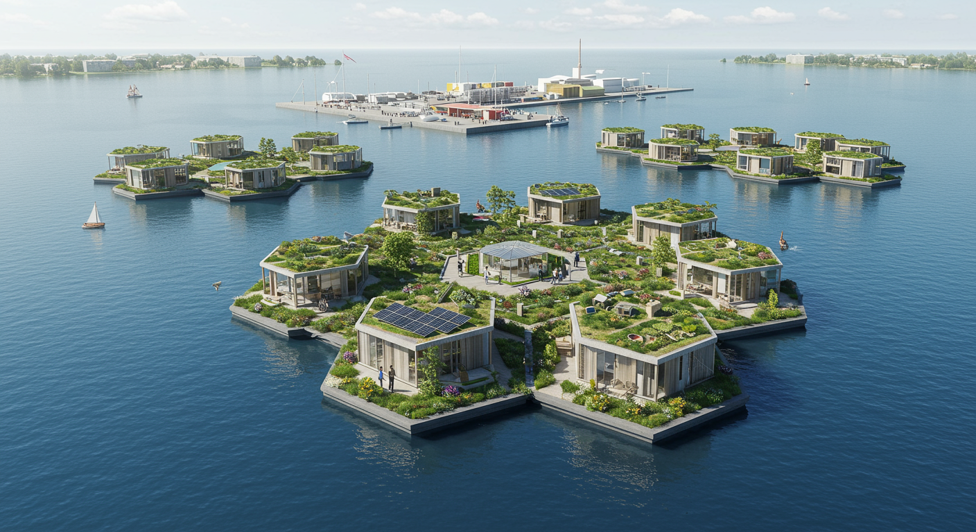 Oceanix is a nonprofit organization that designs and builds floating cities. Oceanix and the MIT Center for Ocean Engineering are showcasing the concept of a floating city. The floating communities consist of hexagonal islands of 4.5 acres that can house up to 300 people. If you combine six islands, you could have a small city of 10,000 people. These floating cities could be located around a central port that offers amenities such as shopping, health care, and other businesses. The idea is that the islands would be designed to be self-sufficient, growing their own food and purifying their own water.