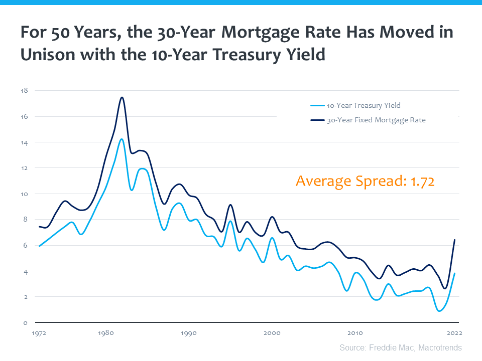 Probably the most confusing thing to all of us right now is the mortgage rate. For over 50 years, the average spread (or difference) between the 10-year treasury yield and the 30-year fixed mortgage rate was 1.72%. The two seemed to move in unison with each other since the 1970s. Essentially, if you added 1.72% to the 10-year treasury yield, you would arrive at the 30-year mortgage rate.