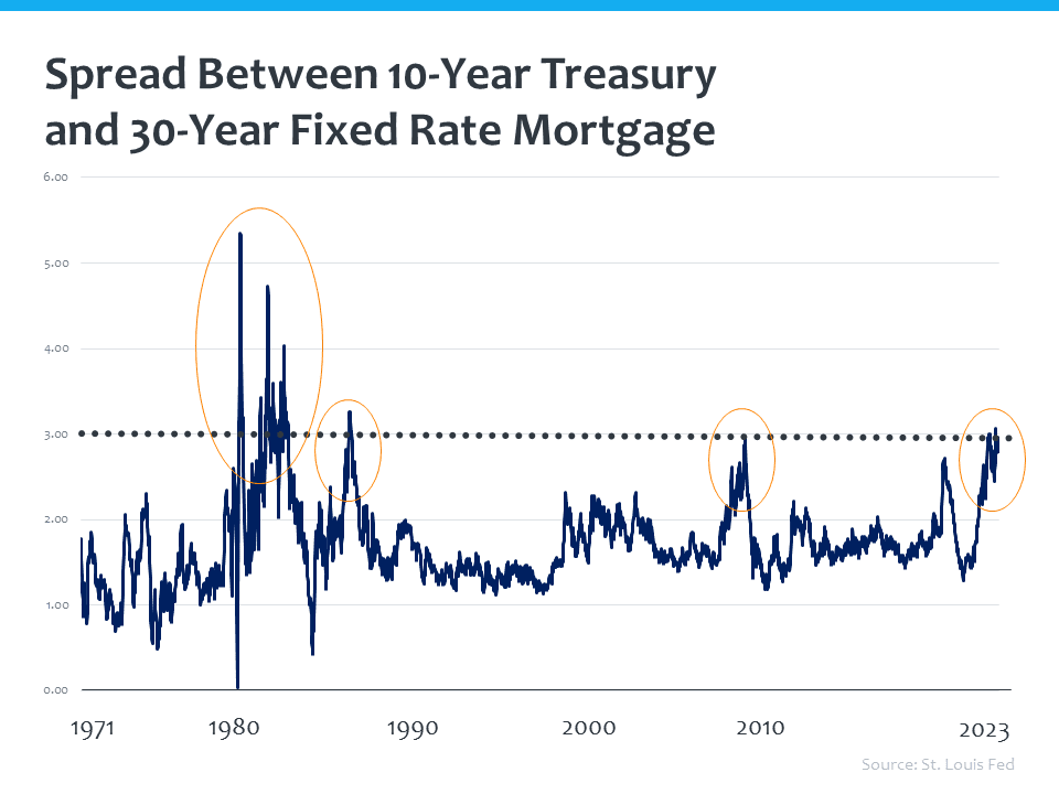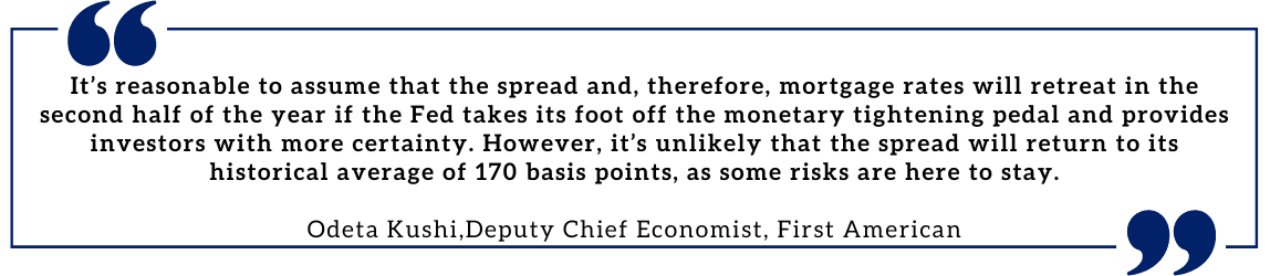 However, at the beginning of this year, that spread increased. For the first 5 months of this year, the average spread between the 10-year treasury yield and the 30-year fixed mortgage rate was 2.96%.