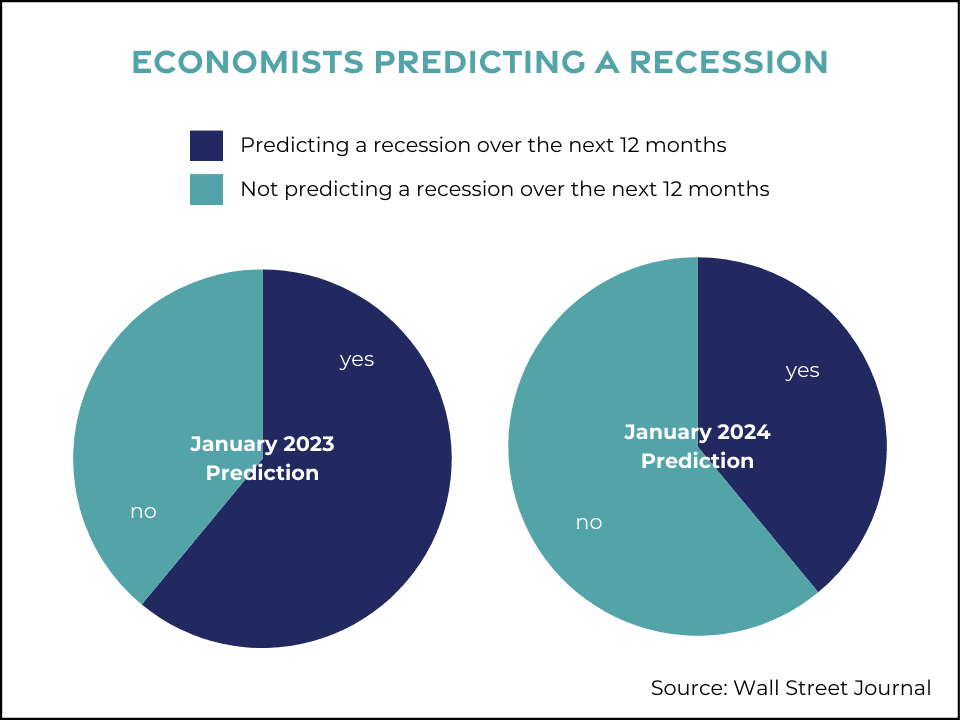One of the things that comes into play with mortgage rates is the economy. The Wall Street Journal’s survey of economists also ended up updating their predictions of a recession over the next 12 months.