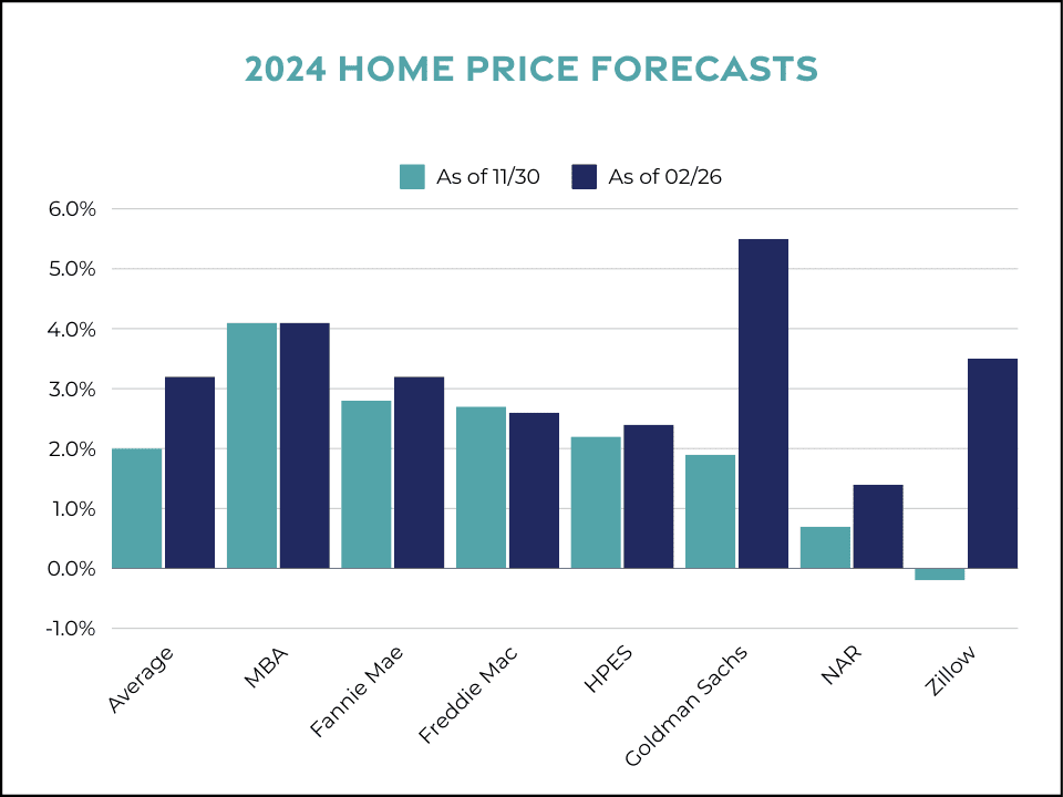 These same 6 experts are now projecting an average of 3.2% home price appreciation for 2024. Expect people to become more optimistic about home prices as time goes on.