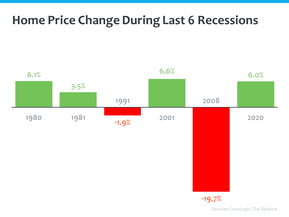 How would a recession impact home prices? Historically, during 4 of the last 6 recessions (going all the way back to 1980), home prices rose.