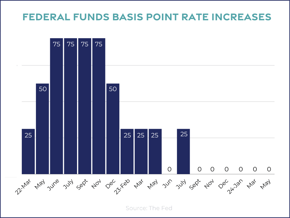 The Federal Reserve has been raising the federal funds rate in an effort to slow the economy. Raising the federal funds rate essentially makes it more expensive to borrow money. There was an anticipation that the Federal Reserve may be starting to cut the federal funds rate in the first half of this year, however they may need to see more definitive trends (and a slowing of the economy) for that to happen.