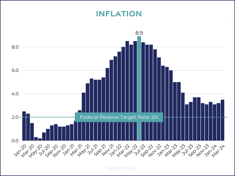 Inflation today continues to exceed the Federal Reserve's target rate.