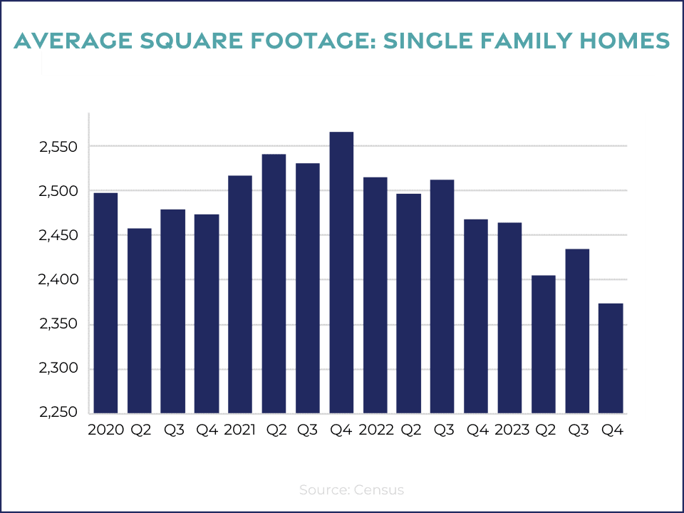 After a brief increase during the post-COVID building boom, home size is trending lower and will likely continue to do so as housing affordability remains constrained.