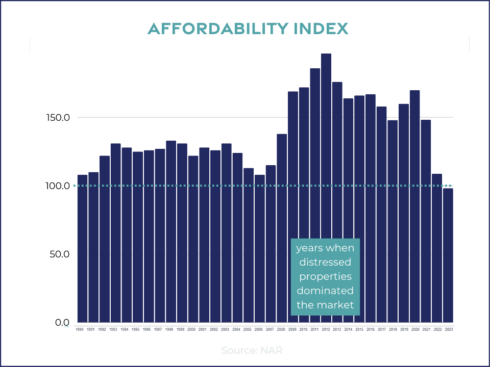To dissect affordability, we turn to the National Association of REALTORS® Housing Affordability Index.