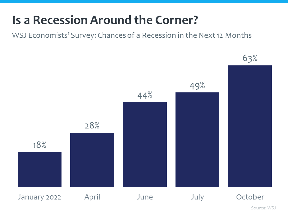 The Wall Street Journal asked economists, “What are the chances of a recession happening in the next 12 months?” The percentage of economists who are expecting a recession over the next 12 months has continued to increase since the beginning of the year. As of last month, 63% of economists feel that there’s going to be a recession sometime over the next 12 months. But remember that a recession does not mean falling prices.