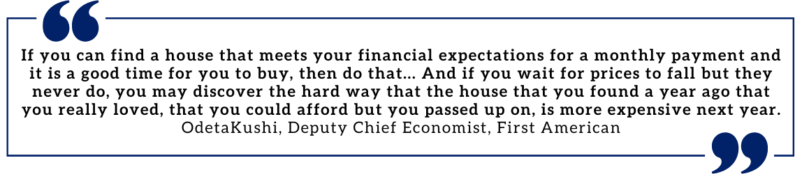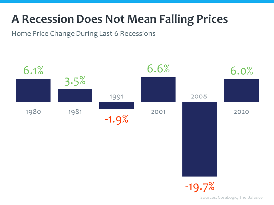 In four out of the last six recessions, home prices actually increased. Of course 2008 was an outlier, and a very different landscape from where we are now when it comes to inventory, lending standards, and equity – factors that are driving the housing market in a different direction. We don’t want to assume that we will not see falling prices, but this does show a recession does not mean home prices will fall.