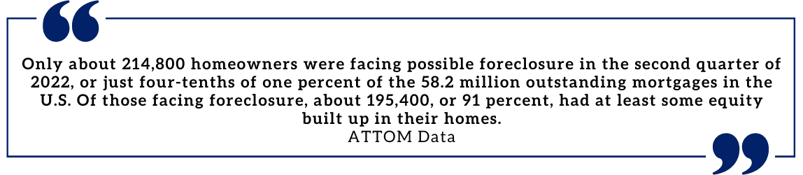 If you were to sit down with a servicer in the mortgage business, they would generally tell you they’re okay with about 1% default rate in a portfolio. Right now we are at four-tenths of a percent. In addition, of those facing foreclosure, 91% had equity. This equity could allow a homeowner to sell rather than foreclose.