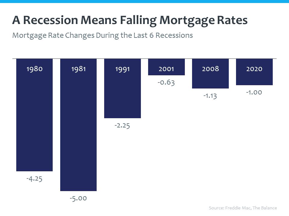 A recession also tends to coincide with falling mortgage rates. Of those same six recessions, mortgage rates dropped.