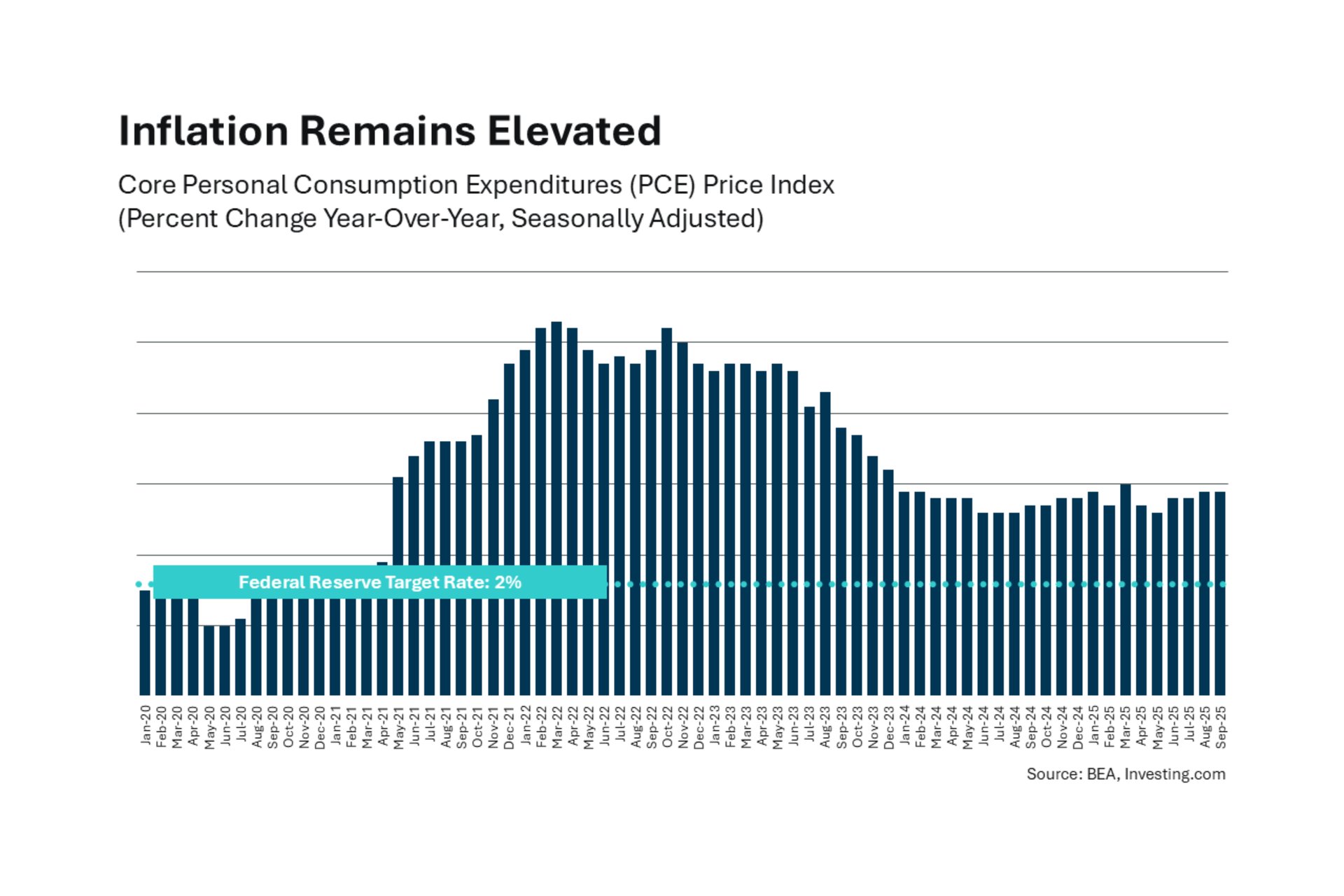 One focus of the Fed is inflation, which remains slightly elevated - a little bit higher than their goal of 2%. However, it is starting to stabilize, and we're seeing that stability over time.