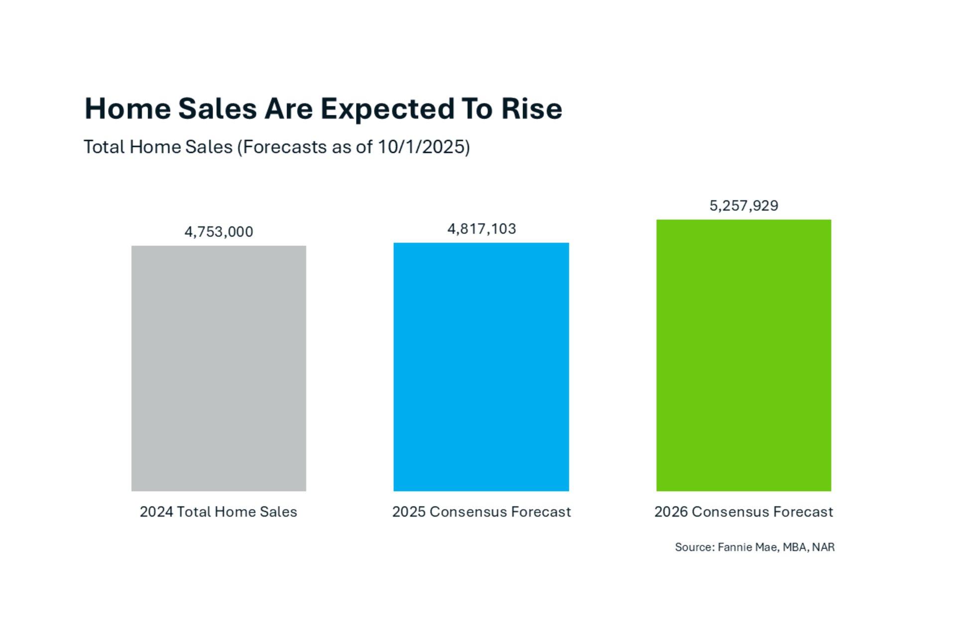 Well, we're expected to end this year with more home sales than last year, and 2026 is expected to see even more homes sell - that's existing homes, plus new homes. Now, it’s not a huge jump, but it is good news. The combination of more inventory, higher demand, easing mortgage rates, moderating home prices, and improved affordability will be the wind at the back of the real estate industry as we close out the year and head into 2026.