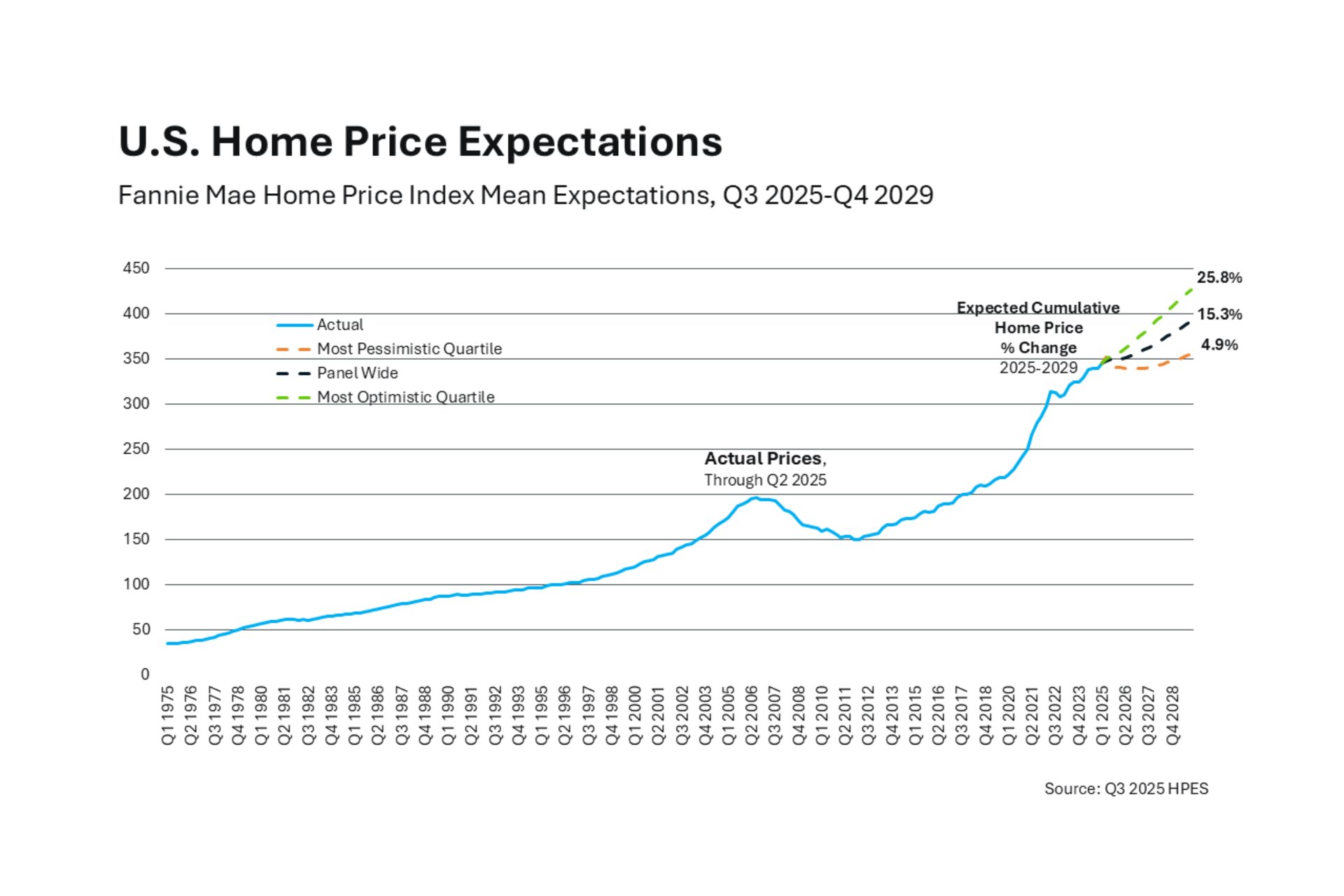 The U.S. Home Price Expectation Surveys is made up of about 100 economists and industry experts who look at the data available and project out what they think home prices are going to look like over the next 5 years. The optimists are saying home prices could rise nationally by about 25% over the next 5 years, but the average is closer to 15%. What's interesting is even the pessimists, the people who are on the much lower end of the scale when it comes to home price projections, are saying there will be growth over the next 5 years – at a much more moderate, much more sustainable, much healthier pace for the market than we saw a few years ago. That's definitely another good sign for the stability of the housing market.