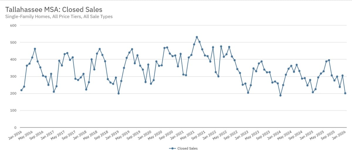 Locally, the Tallahassee market has long shown a seasonal rhythm, with stronger sales activity often building in spring and early summer.