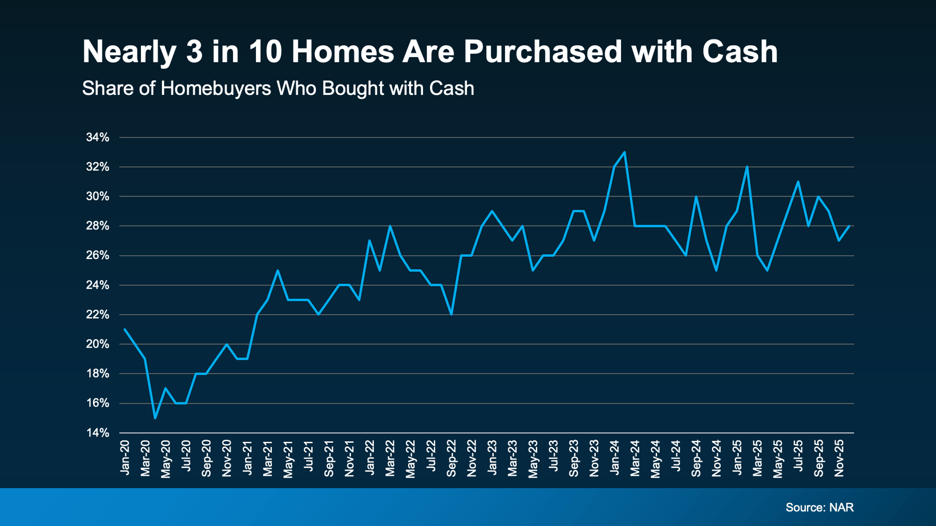 For some longtime homeowners, that idea is more realistic than it sounds. While the national share of cash buyers is much higher, Tallahassee is still more in the range of about 20% cash purchases, which means financed offers remain common here. But for repeat buyers who have built substantial equity over time, that equity can still create a major advantage in today’s market.