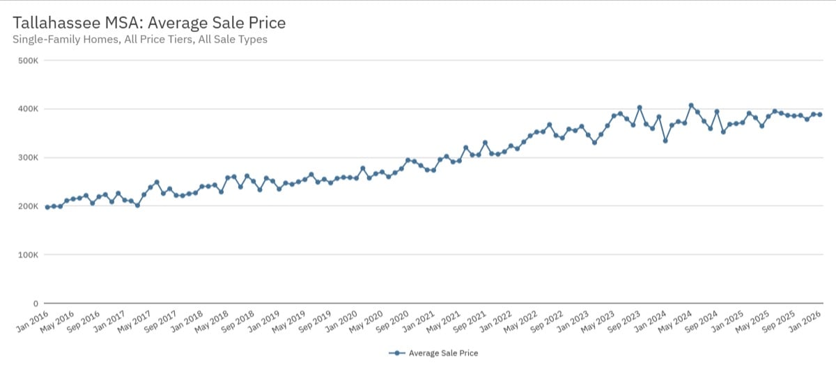 In the Tallahassee, average sale prices for single-family homes have climbed dramatically since 2016 and are still sitting near the upper end of that long-term range in early 2026. For many homeowners who bought years ago, especially before the sharp appreciation of the past several years, that means they may be sitting on more equity than they think.